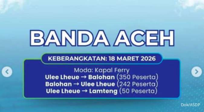 KONTAN.CO.ID - Simak cara daftar mudik gratis ASDP untuk Wilayah Aceh. Kabar baik bagi masyarakat Aceh dan sekitarnya yang berencana melakukan perjalanan mudik Lebaran 1447 H / 2026 M.